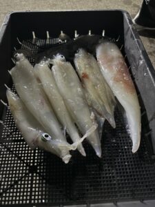 ヒラメアジ、アカイカ