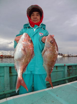 昨年中は格別のご用命を賜り厚く御礼申し上げます。 なにとぞ本年もよろしくご愛顧のほどお願い申し上げます。 ・・・・・・・・・・・・・・・・・・・・・・・・・・・・・・・・・・・・・・・ 謙信丸 1便(8h) マダイ 0.5〜2.7kg 10枚