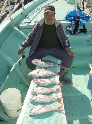 謙信丸 1便 マダイ 釣れませんでした 2便 マダイ 0.5〜1.0kg 5枚