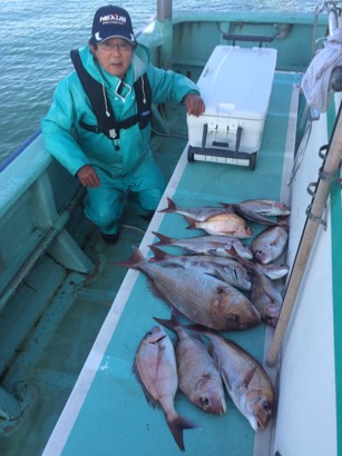 1便(8h) マダイ 0.5〜1.5kg 10枚 3便 ワラサ 2.0kg 1匹 他、イナダ少々