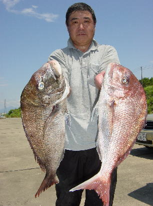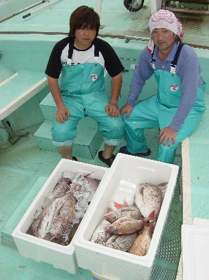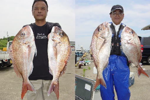 謙信丸 1便 マダイ 0.8〜2.6kg 5枚 2便 マダイ 0.5〜3.8kg 37枚
