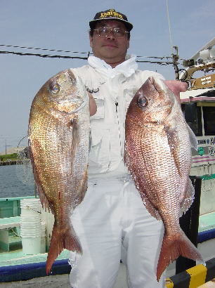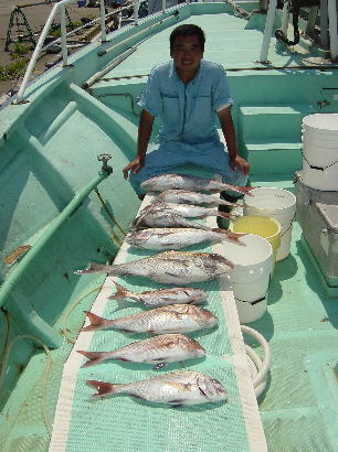 謙信丸 1便(8h) マダイ 0.5〜2.0kg 30枚 3便 アジ 25〜38p 15〜30匹