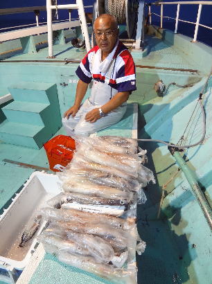 謙信丸 3便 アカイカ 15〜38p 1〜13杯 4便 アカイカ 15〜40p 6〜32杯